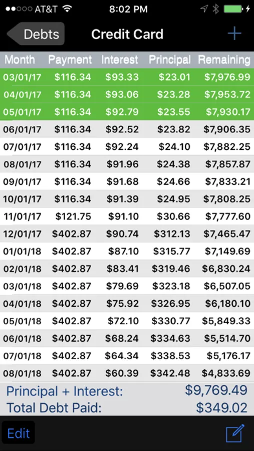 - Tracking your debt payment is as simple as highlighting the payment from the payment schedule.