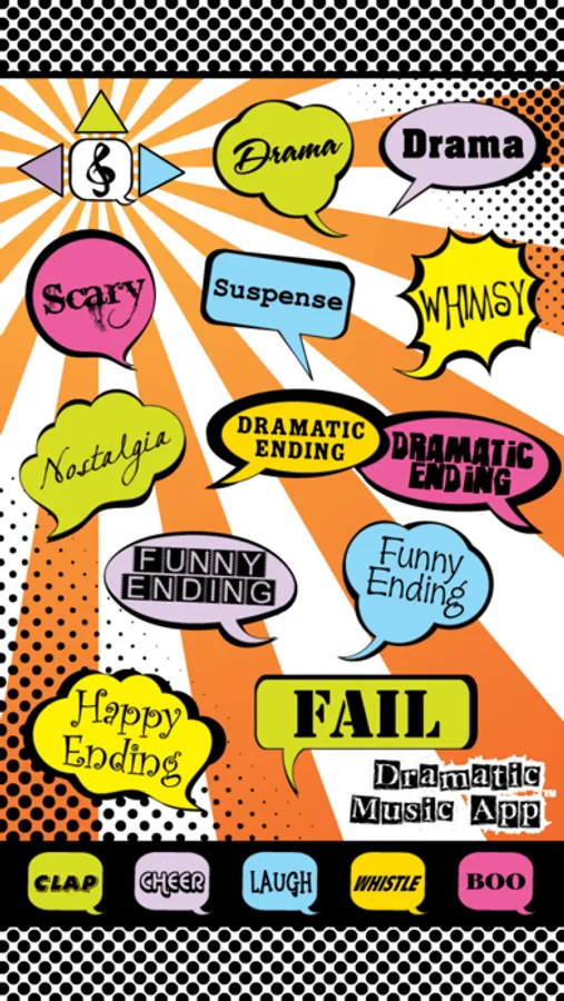 Dramatic Music App contains multiple, swipable pages that give you everything you need for every type of situation or conversation you may be in: dramatic, funny, nostalgic, beginnings and endings, events, continuous loops of beats, instruments, and, of course, everyone's favorite button: FAIL.