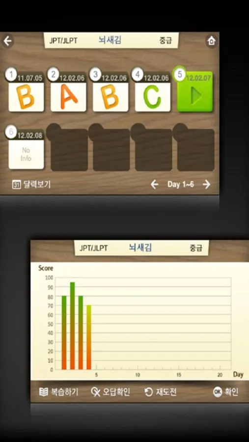 6. 테스트 결과보기 : 그래프,점수,달력을 통해 확인