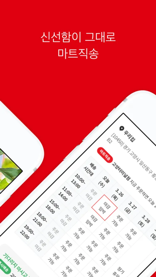 - 마트직송 : 가까운 홈플러스 매장에서 원하는 시간에 당일배송, 4만원 이상이면 무료배송
