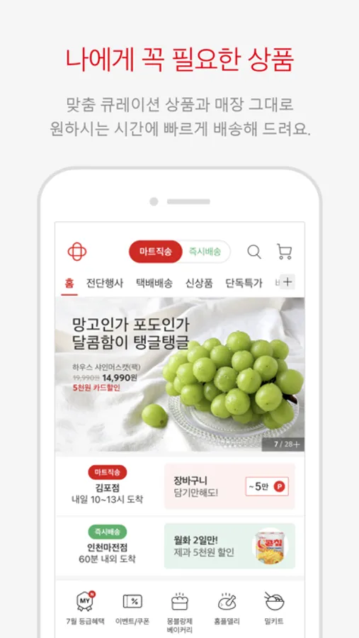 - 저녁 7시까지 주문하면 밤 12시 전에 도착하는, 오늘밤 마트직송