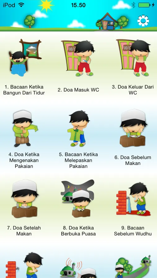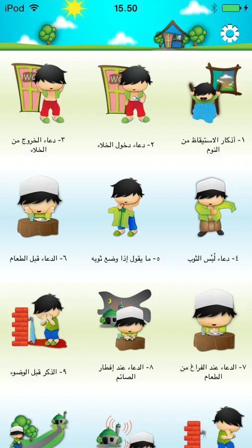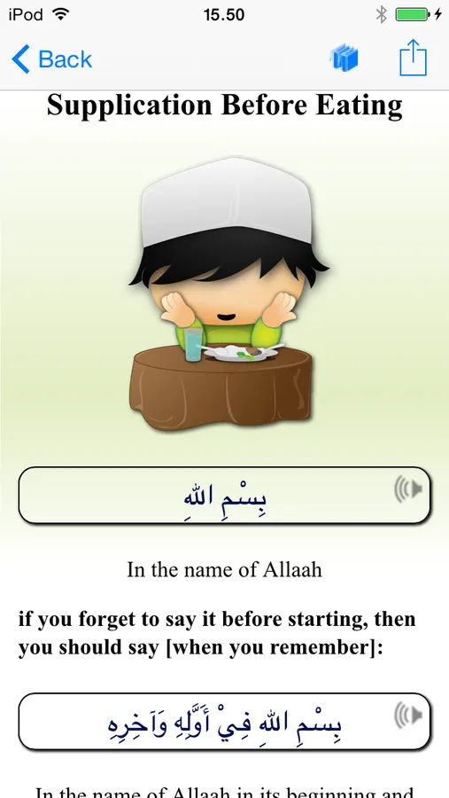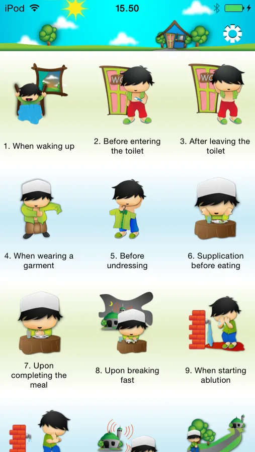 Dua (Supplications and Remembrances) guide for Kids with audio recitation and cute illustrations.