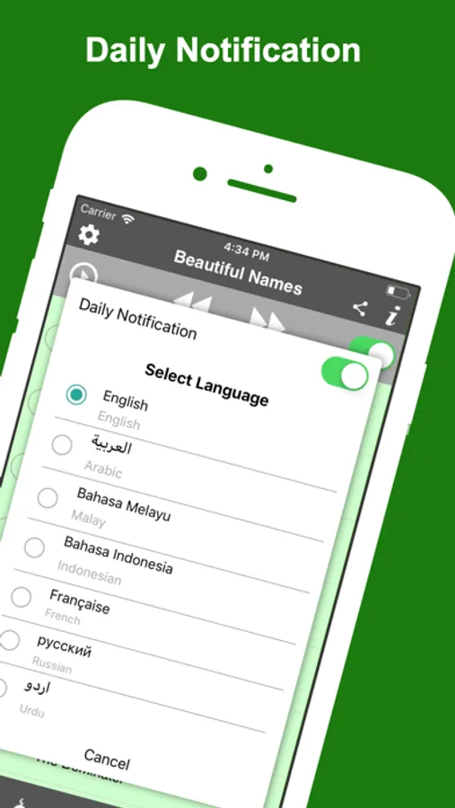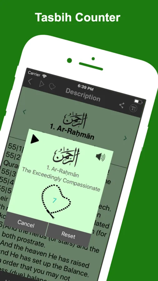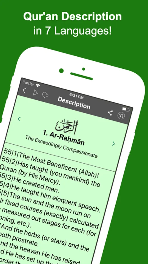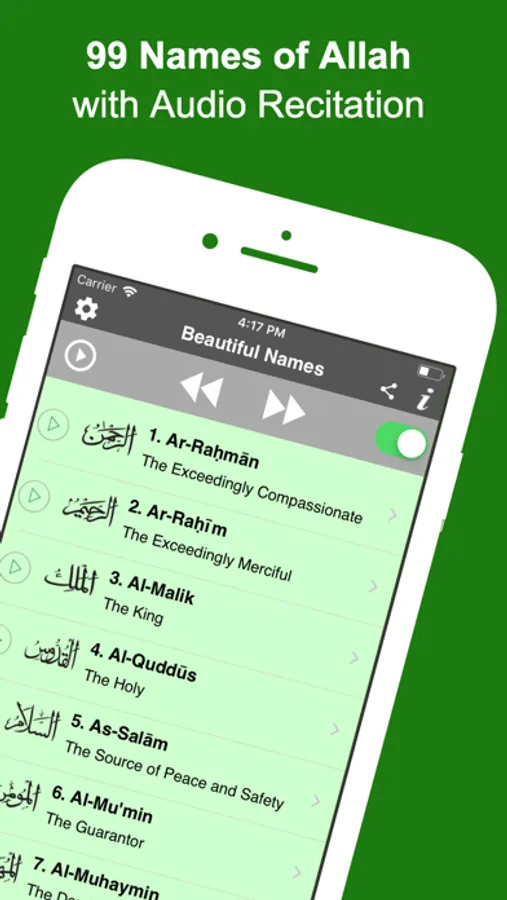 • Read the English Translation of the Meaning of Quran in Description for each name.