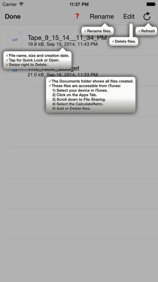 - PDF the Tape and access previous in the Documents Folder.