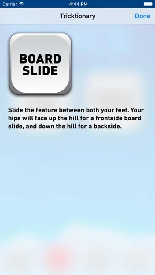 FREE of charge - Comprehensive descriptions and breakdowns for EVERY trick in the book. Don't know what an indy grab is? Just hold down your finger on any of the dice and let the 'Snow Dice' tell you.