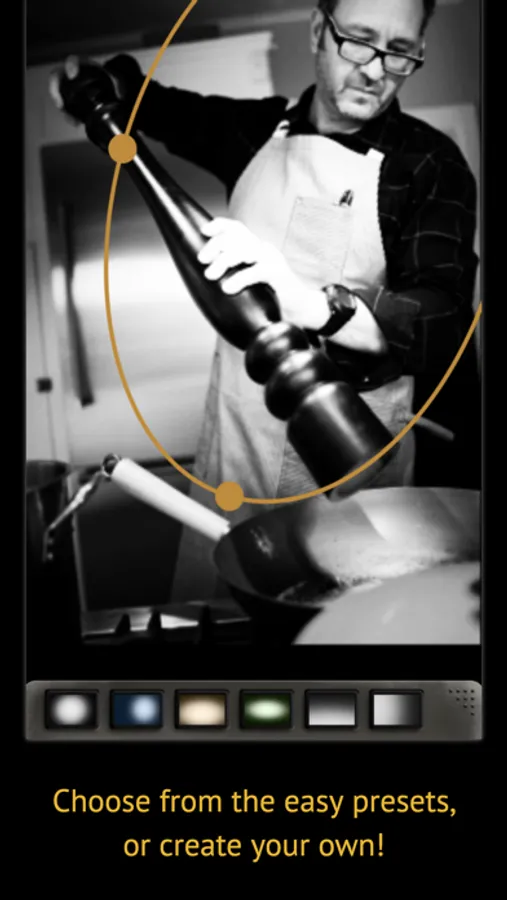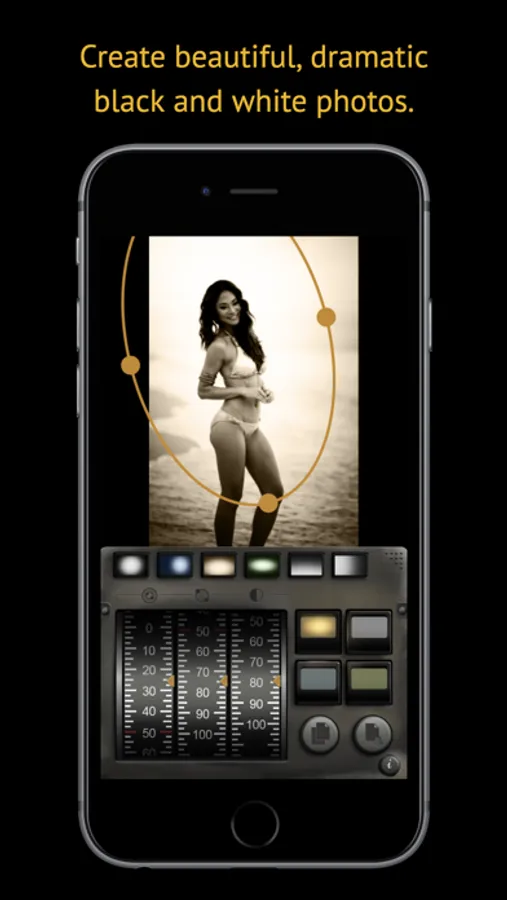 Noir Photo transforms your photos into rich black and white, with beautiful, dramatic lighting that you control. Highlight your subject with the customizable vignette, then dial in the lighting and contrast.
