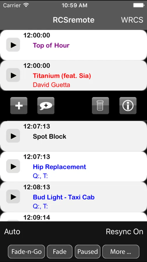 RCS Remote is an application (app) for your phone or hand-held device that lets you control your NexGen Digital's station log. You can manipulate the log with play, pause, stop and fade and go. You can change the station you are controlling as well as switch between satellite, live assist and automated modes. Configure macros and record simple voice tracks directly into the system. RCS Remote directly saves changes into the automation system's library.