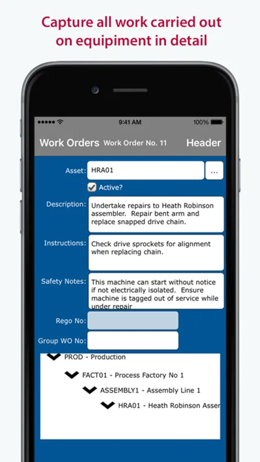 • Assets Register - One central location to store all your asset information including: details, work orders, history, asset audits. Use the iOS App to issue parts to a work order, view create and edit assets in the field.