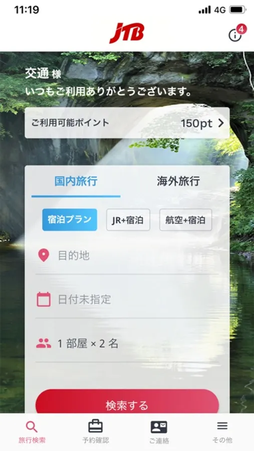 JTBならではの豊富な宿泊プラン、JRや特急・航空機とのセットプランや、レンタカー付プランまで簡単に検索・予約ができます。
