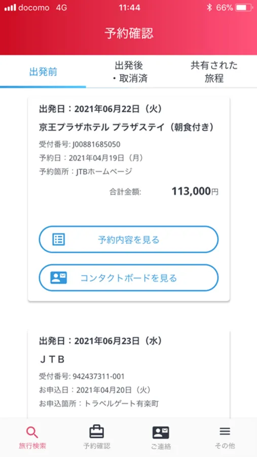 JTBのお店、ホームページで予約した旅行内容の確認ができます。 外出先でもアプリさえあればいつでも予約内容が見られます。