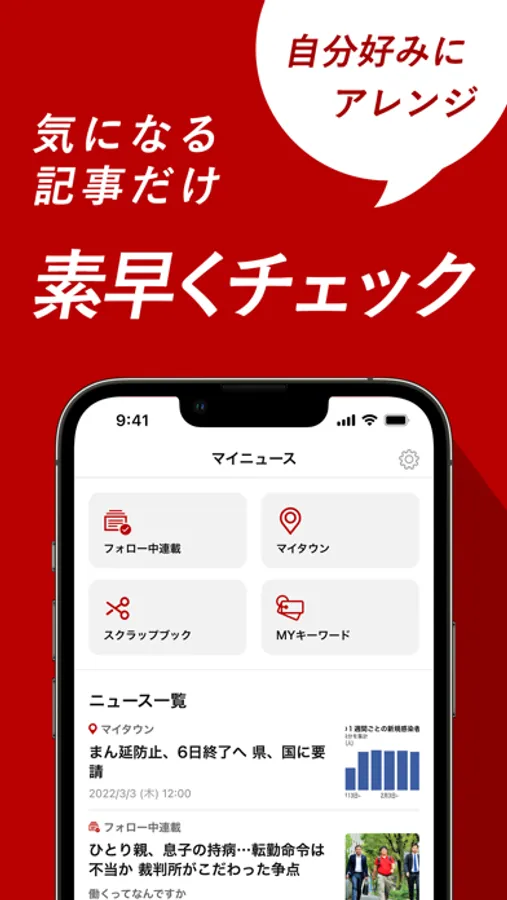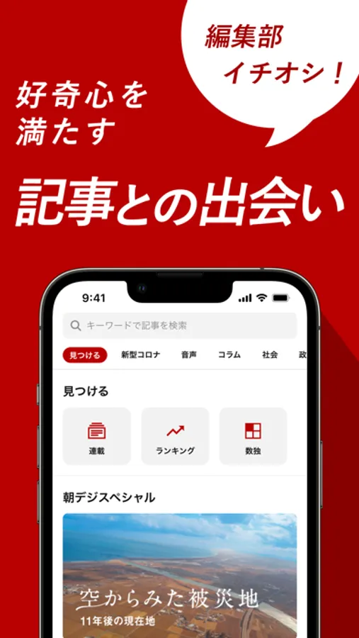 朝日新聞が膨大な情報の中から厳選したニュースをお届け。 「現在のトップニュース」「今日の朝刊」など、ニュースの重要度をサッと把握できます。