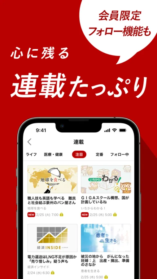 朝日新聞デジタルアプリは無料でご利用いただけますが、"朝日新聞デジタルアプリ スタンダードコース" (1,980円/月) をご登録頂くことで、有料会員限定の記事とコメントが全て閲覧可能になり、さまざまな有料会員限定の機能が利用できます。