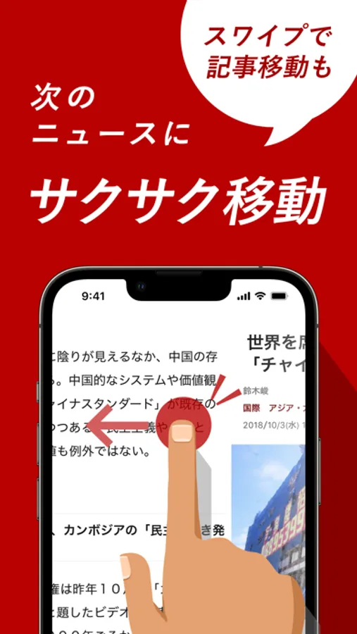 右左にスワイプすれば前後の記事への移動もスムーズ 。プッシュ通知で大事な情報も見逃しません。