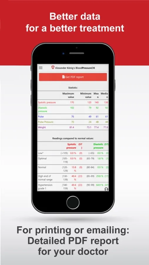 * Detailed PDF report with chart for a given time range for consultation with your doctor. To email or print