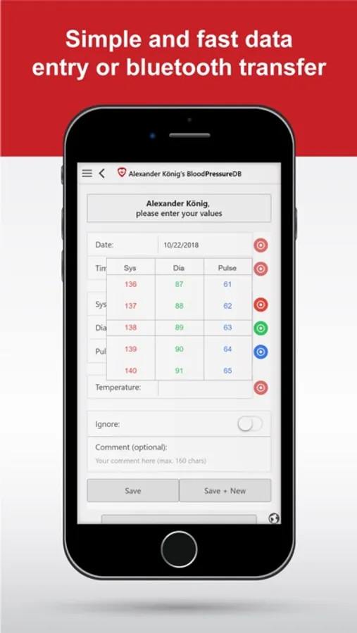 Now you can have your blood pressure under control everywhere. Track, monitor and store your blood pressure (systolic and diastolic) along with your pulse, blood sugar and more. As a patient tracker the app is recommended for people with hypertension, high blood sugar, diabetes, high blood pressure and who have an increased risk of heart attack, you can even track your body temperature.