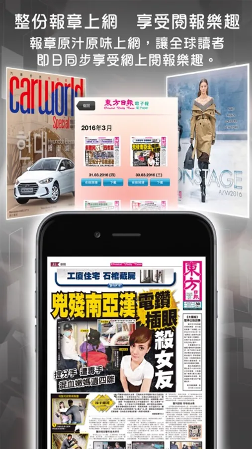東網電子刊物 無遠弗屆,不受天氣、時差及地域阻隔。無論讀者身處世界任何一個角落,只要用 iPhone/iPad,即可與香港讀者閱讀掌握全球時事資訊脈搏。