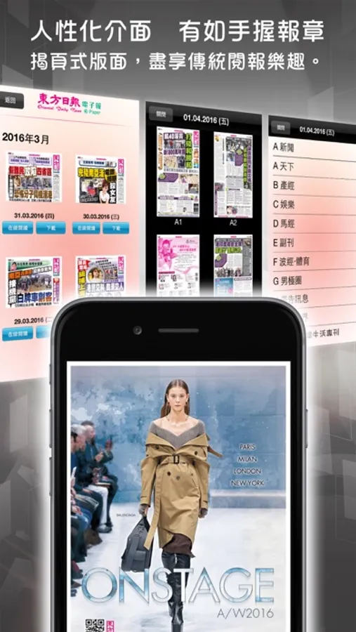 東網電子刊物 由首創把整份報章原貌上網的東方報業集團,再以嶄新技術推出,無論是新聞內容,還是廣告客戶提供的消費資訊,均一覽無遺。讀者可透過 iPhone/iPad揭閱,有如手握印刷版報章,既是尖端科技產品,亦保留傳統閱讀樂趣,為流動電子媒體奠下革命性新典範。