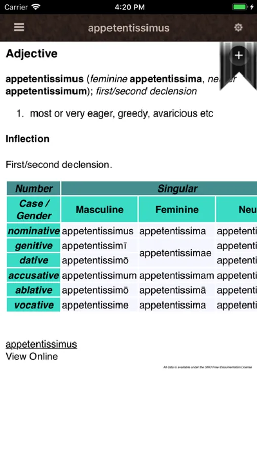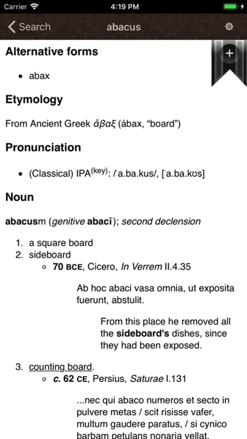 A Latin Language Dictionary iOS app. Contains more than 26 thousand word definitions. Works offline. No internet connection is necessary once downloaded. All words are 100 percent Latin and are and articles are composed in English. This app is appropriate for those seeking to learn or already fluent in the Latin language.
