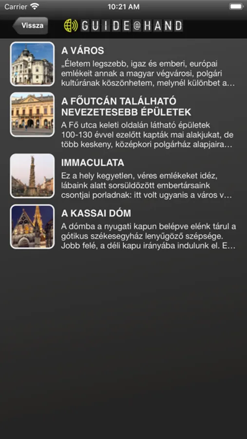 ENGLISH: GUIDE@HAND‘s full audio sightseeing content, tourist information, map and software is available in English and Hungarian. You can choose the default language when installing GUIDE@HAND to your mobile.