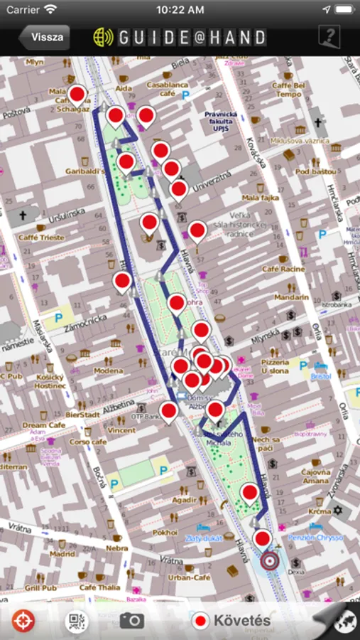 By installing GUIDE@HAND, you already have access to our offline city map. Your current location will be indicated on the map and you can easily browse various services (POIs) available in the city. You can set the default language here.