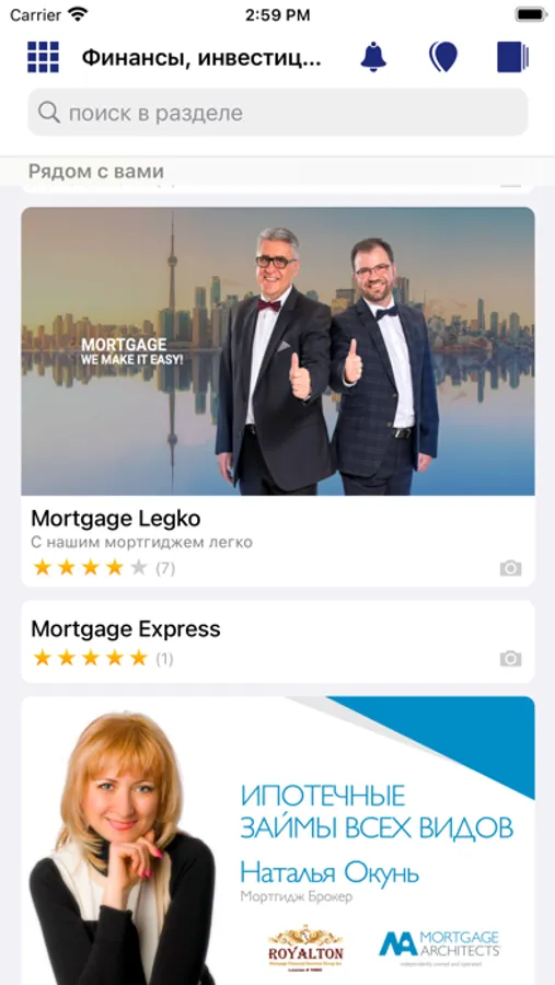 С этим приложением наиболее легко и удобно быть в курсе самых выгодных сделок и надёжных бизнесов рядом с вами, где бы вы не находились в Северной Америке.