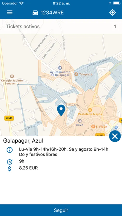 posición de su coche para seleccionar la zona y tarifa correctamente.