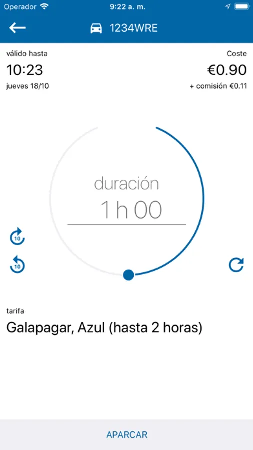 colocar un ticket en el coche. El controlador introduce su matrícula