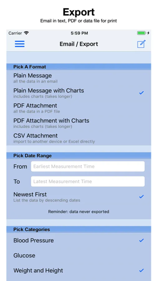 Email Import/Export – simple yet versatile email/export feature lets you communicate with your healthcare provider at a breeze.