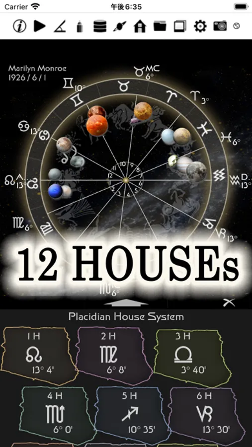 16 kind of HOUSE are shown at a constellation with the inner angle.