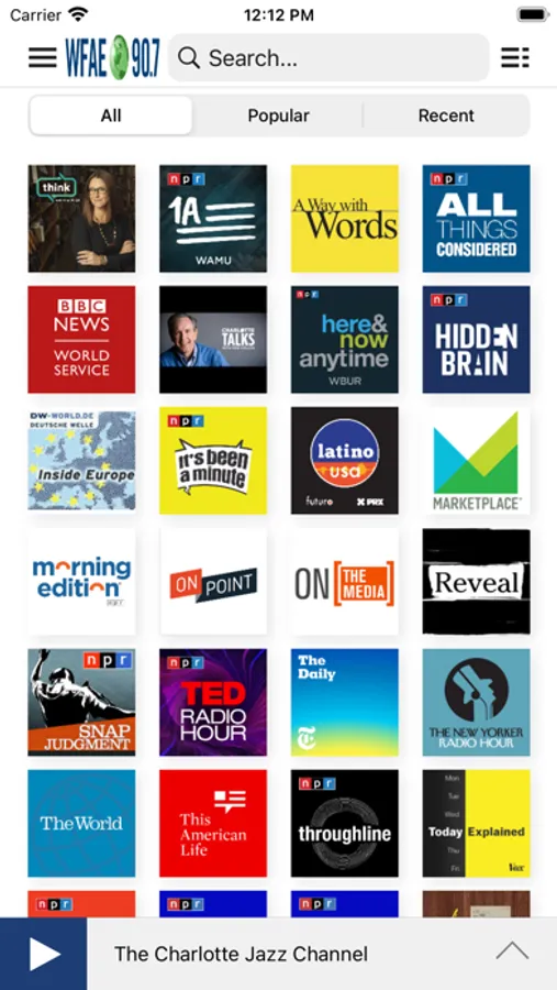 • Access public radio programs from multiple content providers (NPR, PRI, APM and WFAE) easily and quickly.