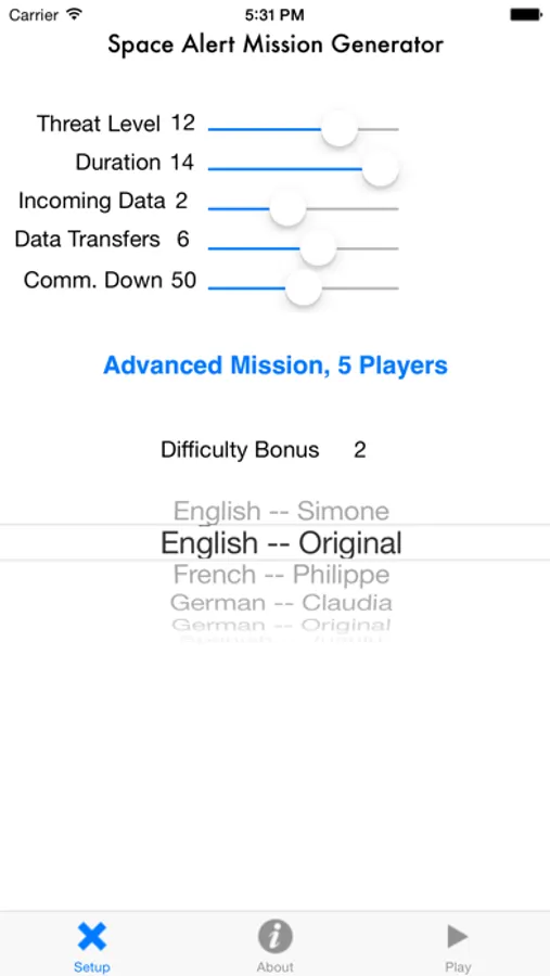 Space Alert is a cooperative board game by Vlaada Chvátil. This app will generate random missions to use in that game, and will assist with the walk-through after each mission is completed.