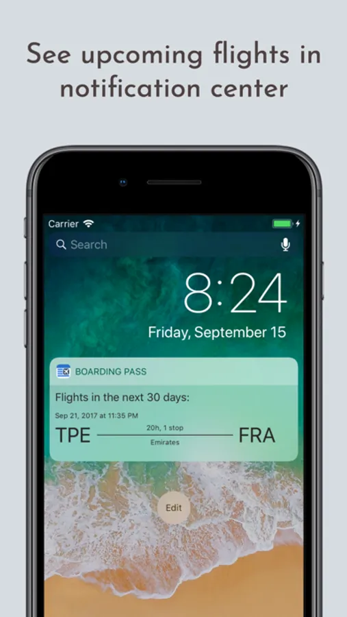 Add the Boarding Pass widget to your notification center or Apple Watch to always have an overview of your upcoming flights.