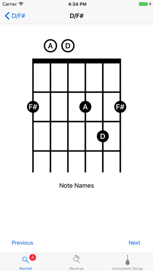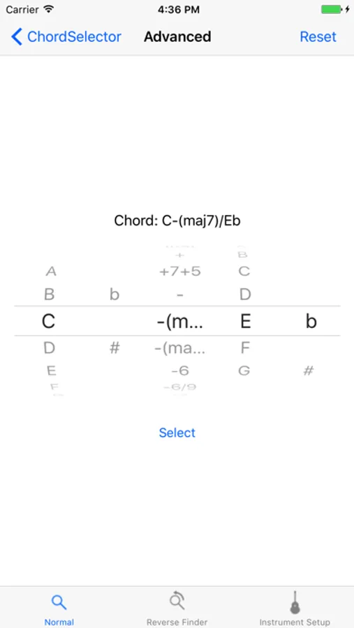 Also included is a reverse lookup option. Nice if you are a bit adventurous and you are coming up with your own chords on your instrument, but don't know how they are called. Fretter can help you here by providing you with the correct naming.
