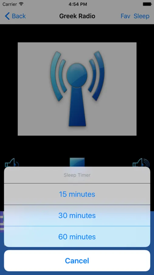A sleep timer can be used to limit the music to 15, 30, or 60 minutes.
