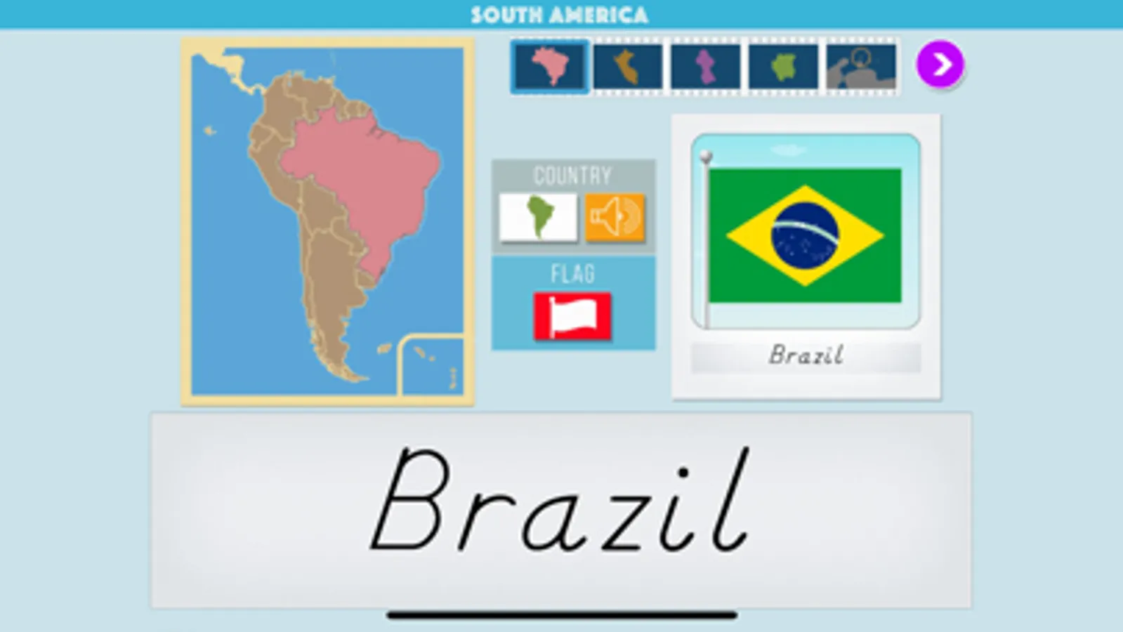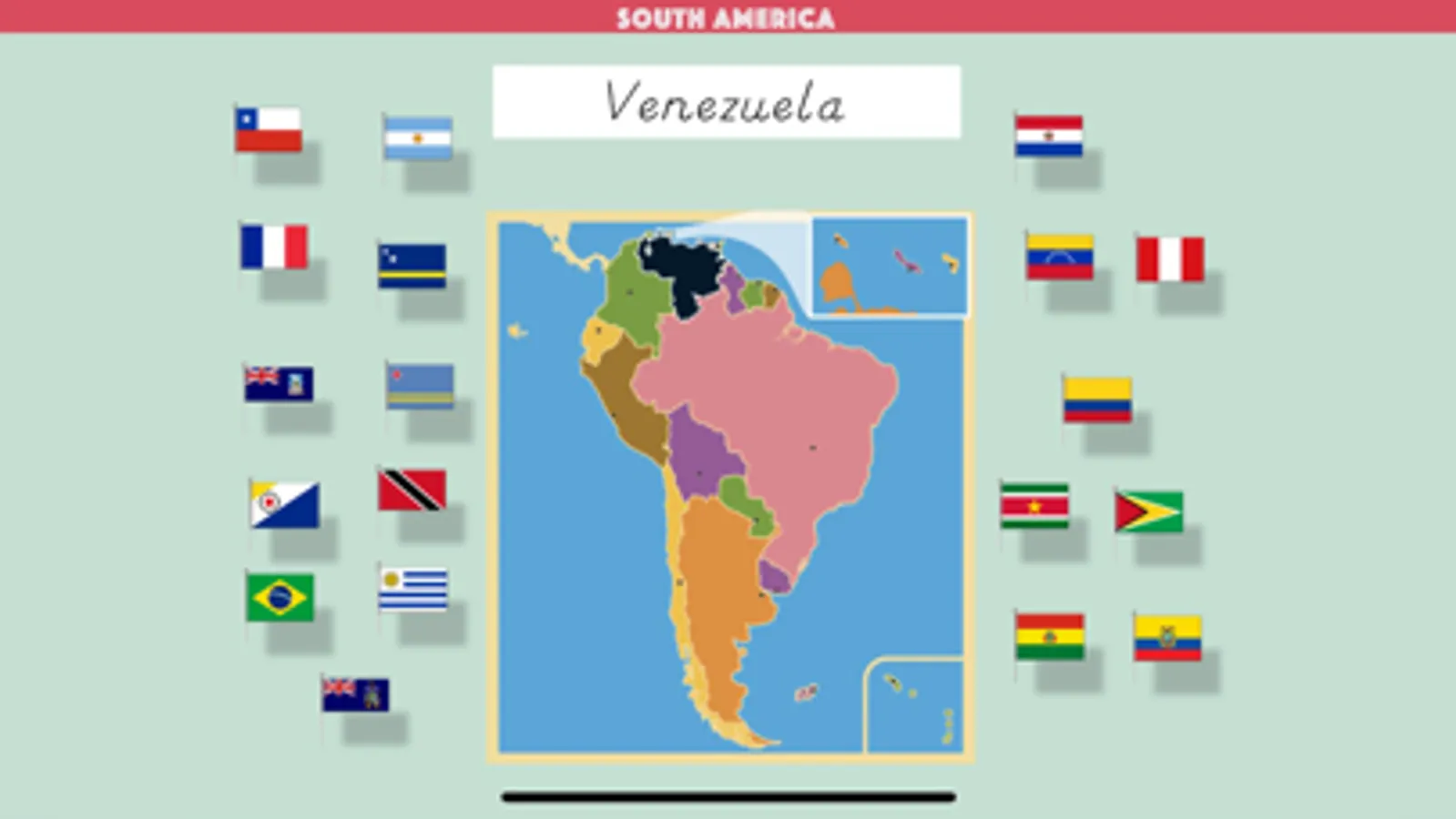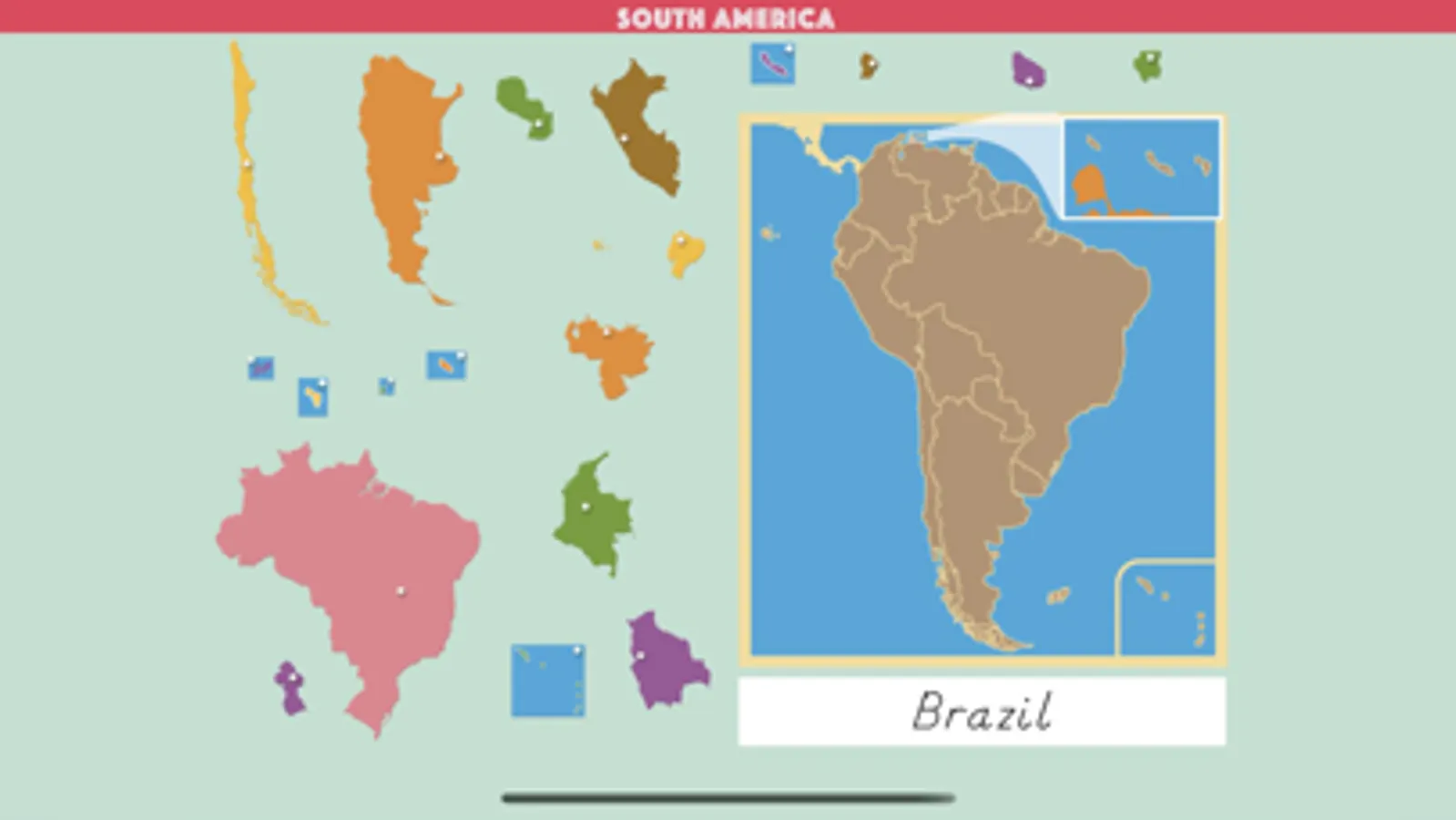 Learn the names and locations of all the countries in South America with this app that beautifully complements the geography materials used in the Montessori Classroom!