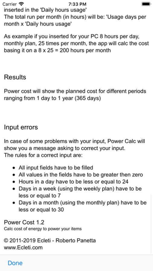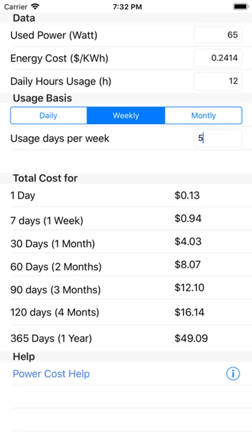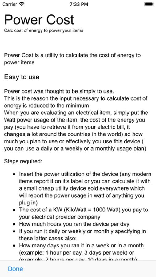 It is a must have application, useful as example when you are in a shop and you are comparing devices to buy and you can easily read the watt usage for each one from their specifications and you want to know the usage cost difference over a year.