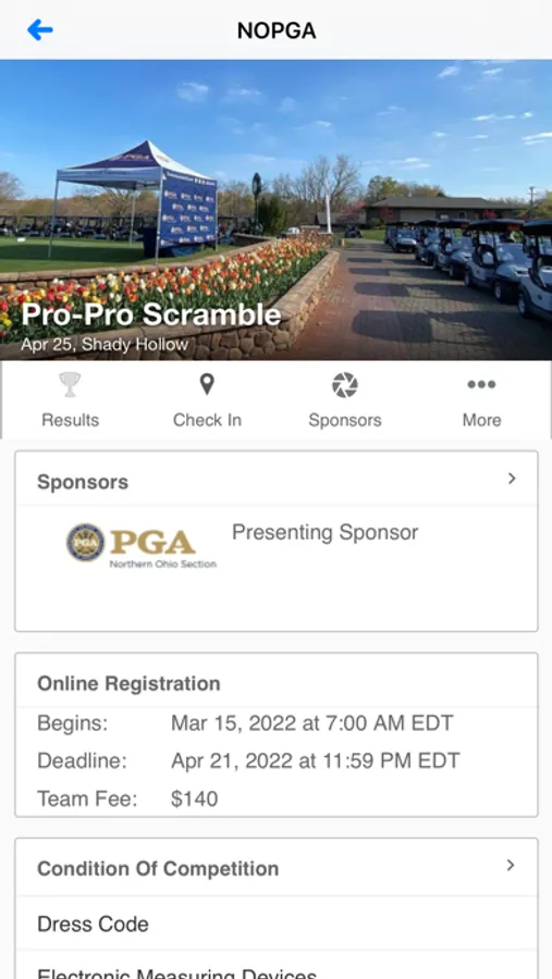 • Check in to NOPGA events, and use GPS to let event staff see your location on the course while you play.*