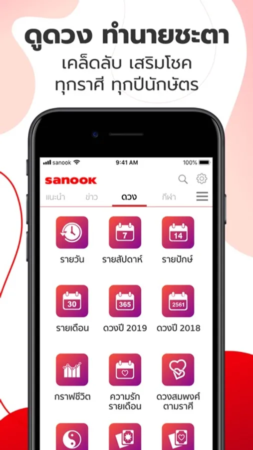รายวัน รายสัปดาห์ รายปักษ์ รายเดือน รายปี กราฟชีวิต ความรัก ดวงสมพงศ์ตามราศี ดวงแบบจีน ไพ่ยิบซี ทำนายฝัน วิเคราะห์ชื่อ ไฝพยากรณ์ ท่าโยคะตามราศี ทายนิสัยจากสีบรา