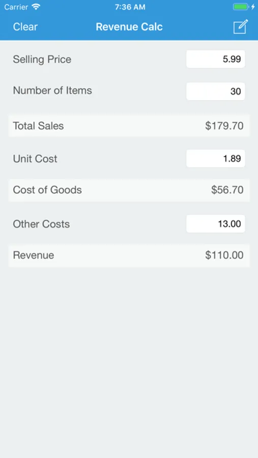 The revenue calculation is used through-out business to produce financial information for business plan.