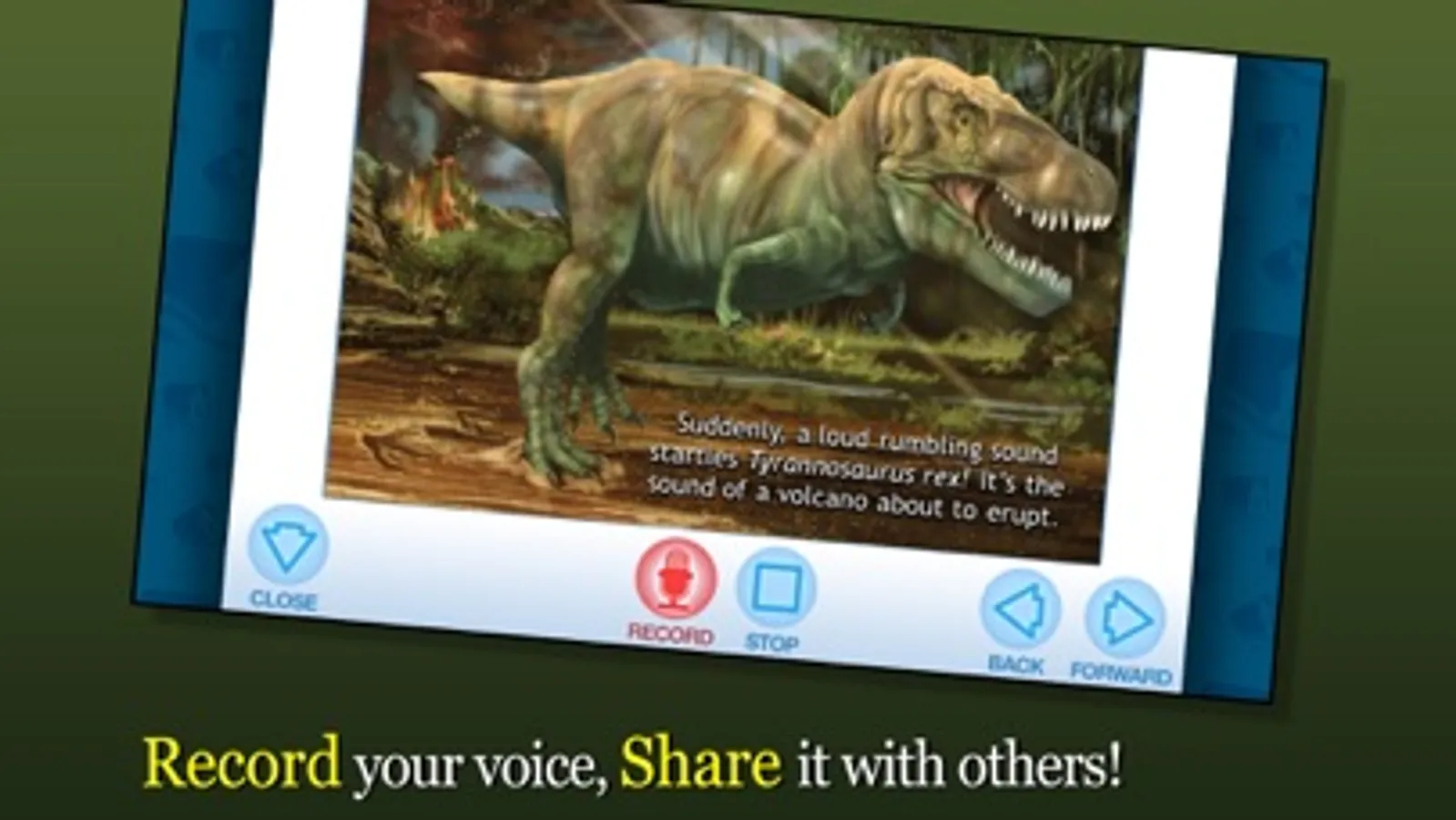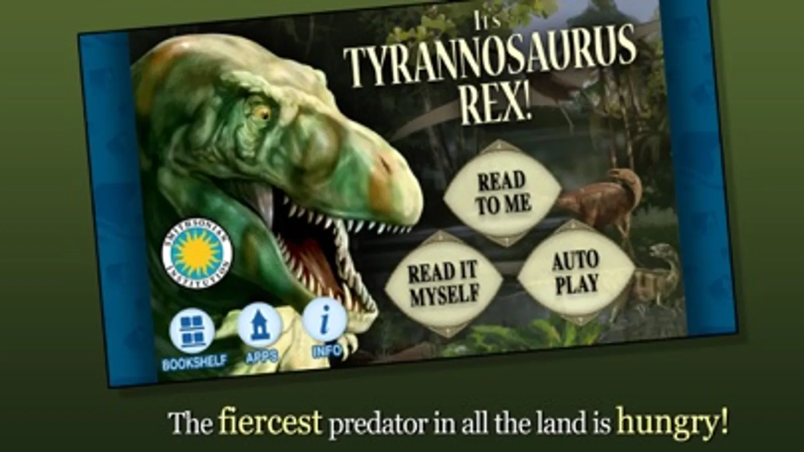 Join Tyrannosaurus Rex, the fiercest predator in all the land, as she shatters the stillness of the prehistoric forest with a loud, pounding sound! Explore pictures, learn new vocabulary, and personalize the story with your own narration. Come along and see what Tyrannosaurus Rex finds to eat.