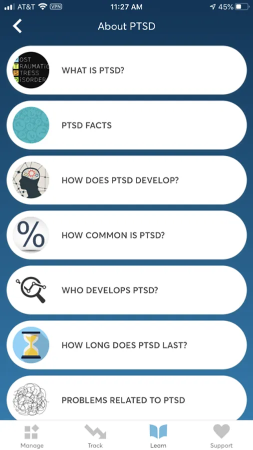 PTSD Coach was designed for those who have, or may have, posttraumatic stress disorder (PTSD). This app provides you with education about PTSD, information about professional care, a self-assessment for PTSD, opportunities to find support, and tools that can help you manage the stresses of daily life with PTSD. Tools range from relaxation skills and positive self-talk to anger management and other common self-help strategies. You can customize tools based on your preferences and can integrate your own contacts, photos, and music. This app can be used by people who are in treatment as well as those who are not.