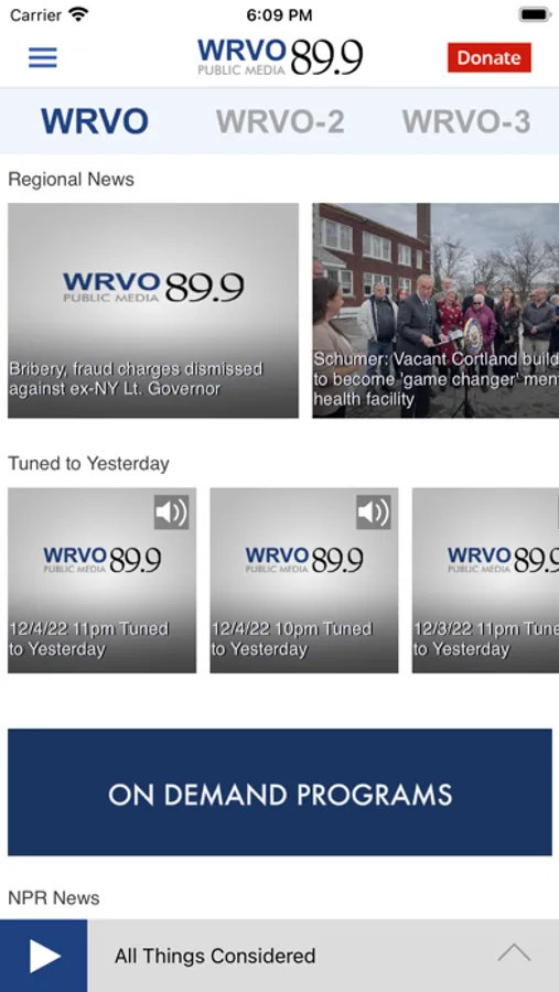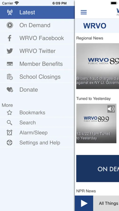 The WRVO Public Radio App allows you to listen to WRVO live, pause and rewind the live audio, and view the program schedule for all the WRVO streams at once! You can explore On Demand content, search for stories, bookmark a story for later, and wake up to WRVO with the alarm clock!