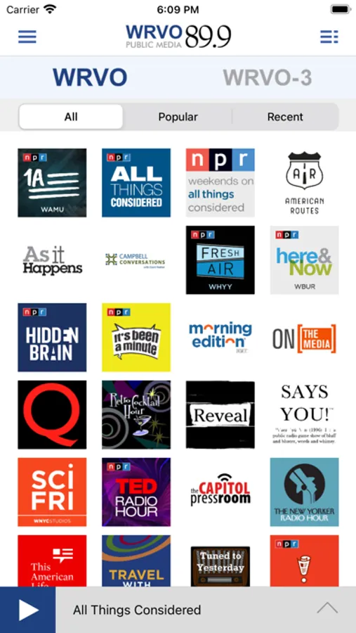 • Access public radio programs from multiple content providers (NPR, PRI, APM and WRVO) easily and quickly.
