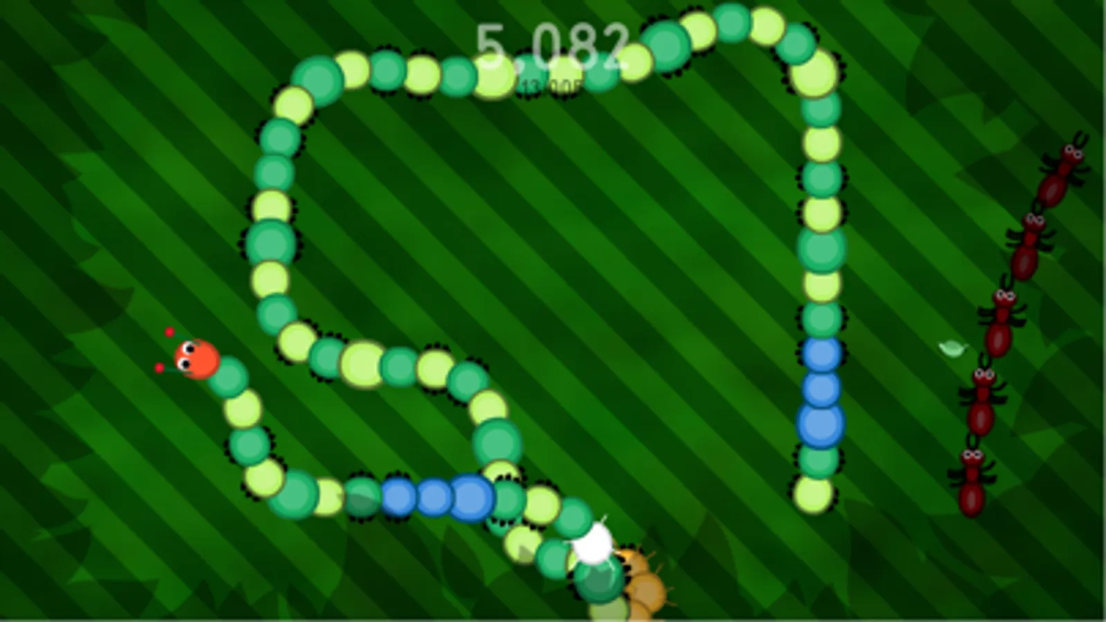 Using this novel control technique, tilt in a direction to make a caterpillar eat leaves. Eating leaves makes the caterpillar grow in length, providing more of a challenge. Sometimes different coloured leaves will appear, causing different things to happen!
