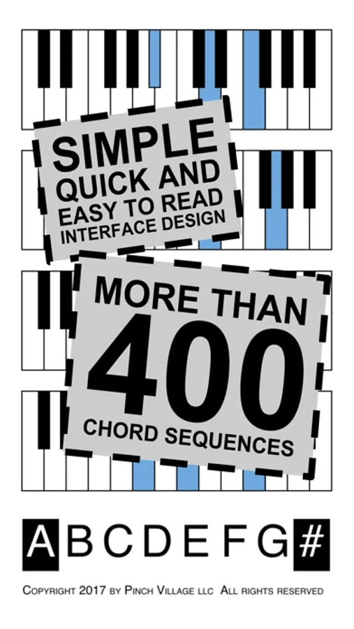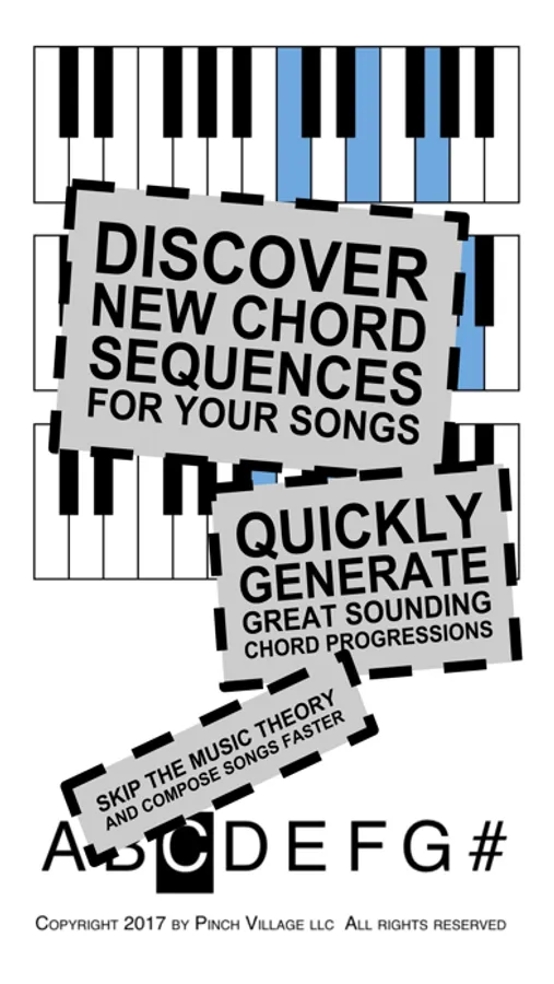 Get chords that sound great on piano. It's instant songwriting: just tap a letter and play the resulting chords. Get different chords by tapping the same letter, a different letter, or the sharp symbol. Over 400 unique progressions available. Minimalistic design is easy to read, easy to use, and ages well. Write your next song at the Chord Cafe.