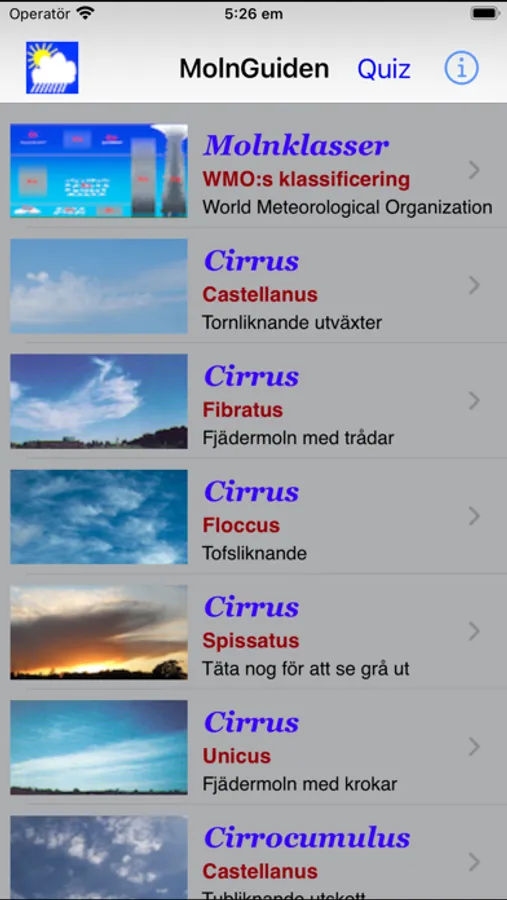 -Quiz för att träna på molntyperna.