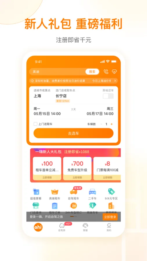 下载一嗨租车APP,会员超值尊享权益,等你解锁!