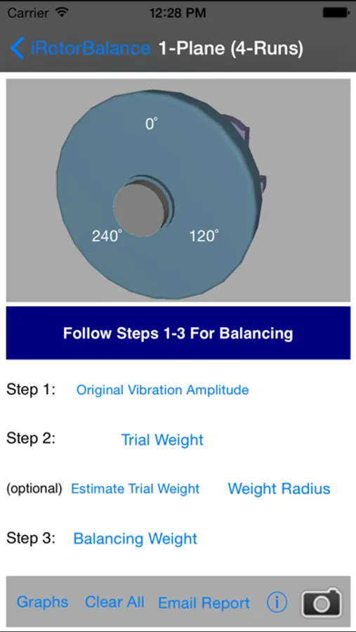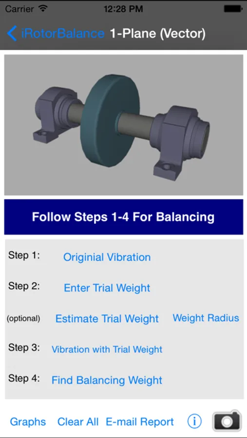 iRotorBalance is a educational and technical calculator for balancing of rotating machinery. The application calculates the correction balancing weight and its angular position given the amplitude and the phase of the measured vibration.