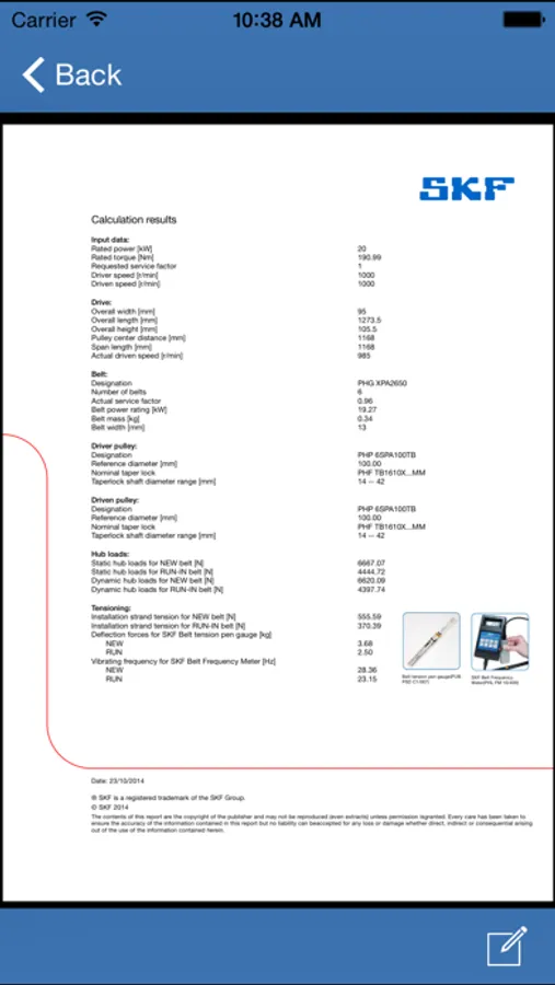 For more information go to: http://www.skfptp.com/skfbeltcalc.htm