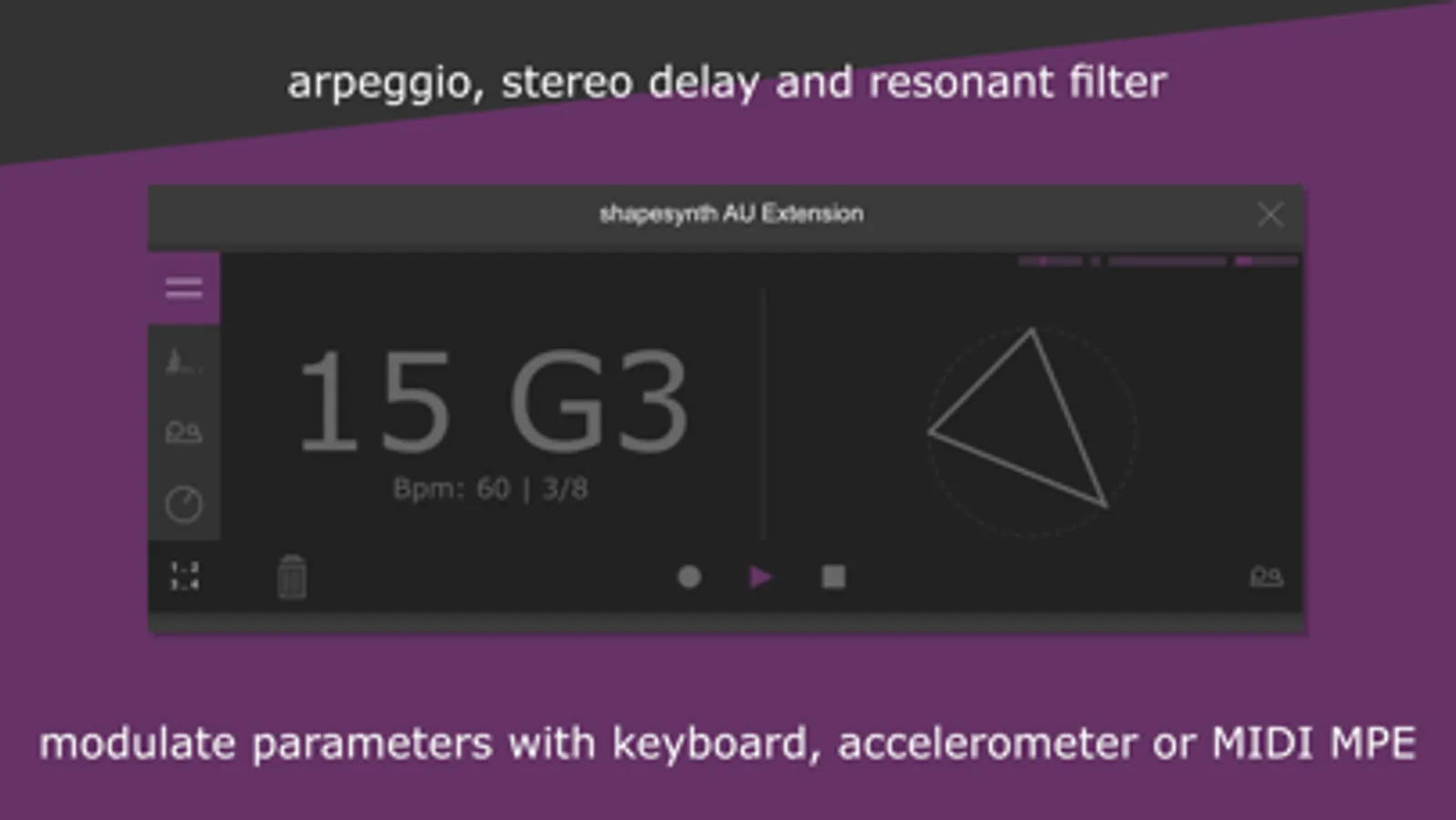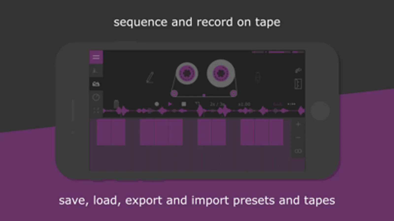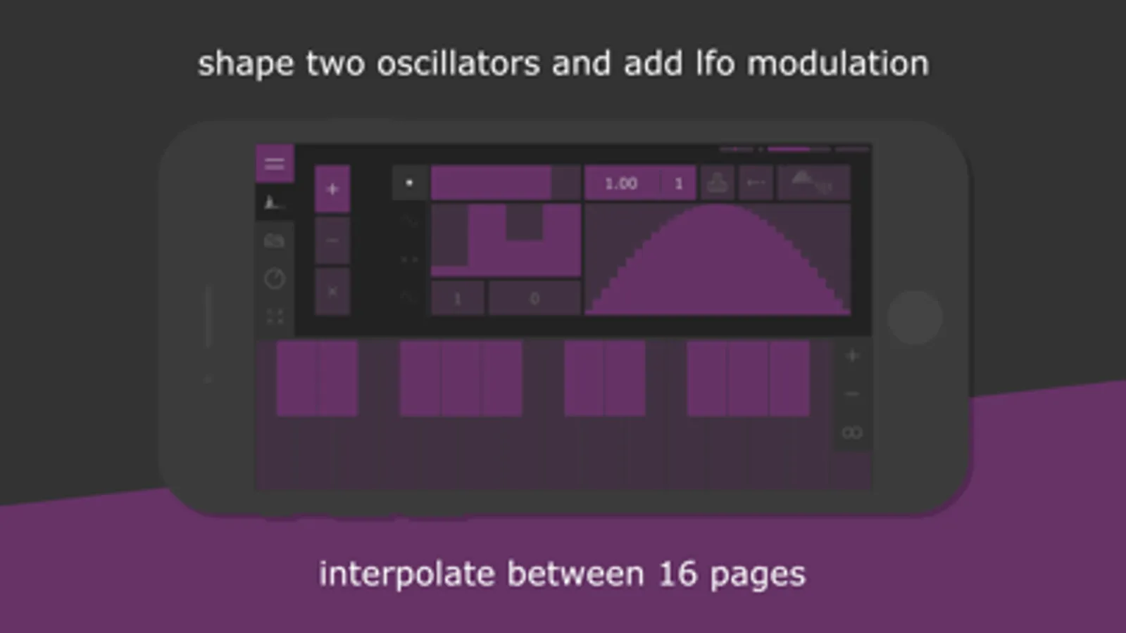 Shape is a polyphonic synthesiser allowing the user to draw the shape of the oscillator waveform. The first half of the oscillator is represented by 32 blocks and the second half is its mirror, generating all sorts of possible raw retroish sounds. 16 pages per oscillator allows to interpolate between different shapes. Add effects like arpeggio, stereo delay and a resonant filter and record your sounds on a classic tape. Modulate any parameter with keyboard, MIDI MPE or the device accelerometer. Connect to other apps with AudioBus, IAA, AUv3 and midi.